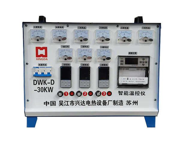 總功率30kw分3路構成,每路可單獨工作,每路額定功率為10kw,每路可同時驅動1塊10kw加熱器,溫度表采用可編程控制器,該控制器采用模糊控制算法或自適應控制,可根據(jù)具體現(xiàn)場環(huán)境,設備穩(wěn)定性好,可自由編程為4斜坡/保溫×2曲線或8斜坡/保溫×1曲線,輸入電壓:380V 50Hz,輸出電壓:220V,控溫范圍:0-1000℃, 可以任意設定升降溫的速率,控制精度誤差≤1%。
